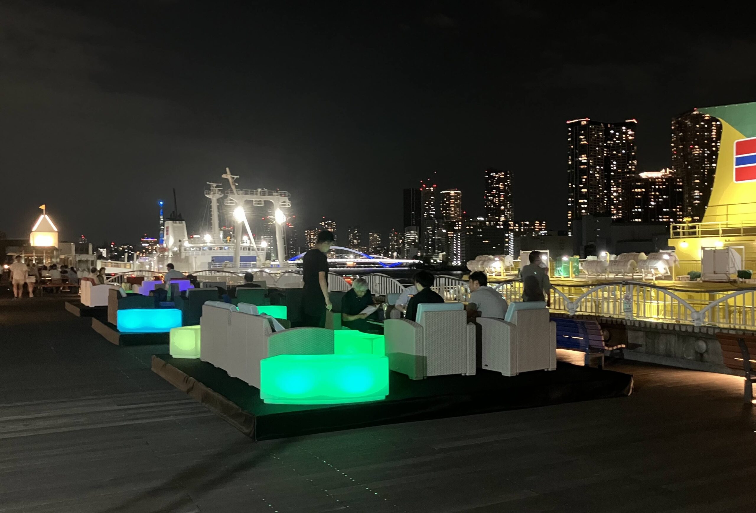 竹芝客船ターミナルでは食とライブのイベント、東京ポートシティ竹芝では盆踊りイベントの会場設営と運営のサポートを行いました。