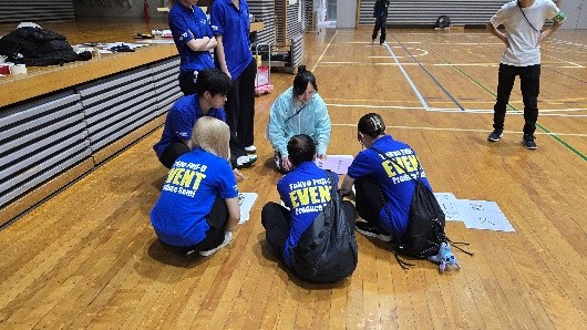 設営時のコート作りやトーナメント表貼り、受付、試合開始後はコート周辺での誘導やボール拾い、得点記入や本部への結果報告などを担当。この試合に向けて一生懸命練習してきた子供たちのプレーや、先生方・親御さんたちの熱気と応援は、そばで運営を担当している学生たちを感動させるほどでした。終わったあとのモップ掛けも含め、終始学生たちは自ら考えながら積極的に行動しており、主催者からは「大変助かった」「こんなに早く撤去が終わったことはなかった」と評価いただくこともできました。学生たちにとって、子供・保護者への対応や基本的な現場力を学ぶ貴重な機会となりました。