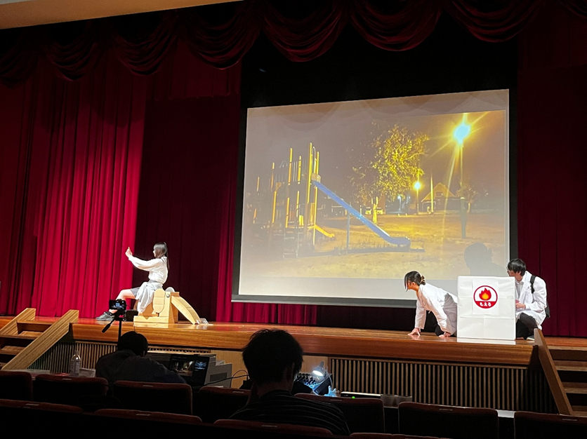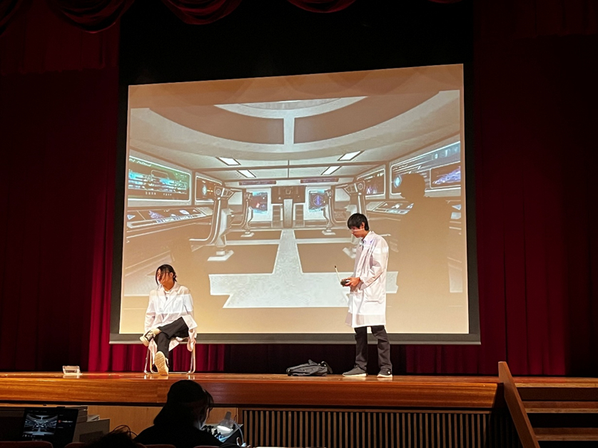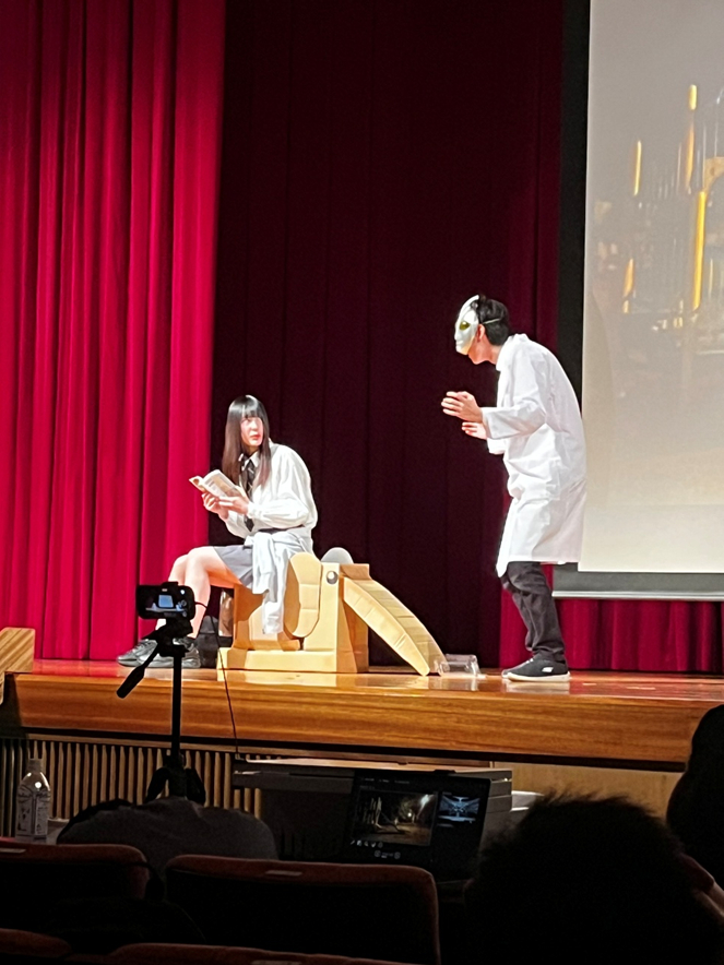 5月20日(火)17:00より二上講堂にて、演劇部が今春の新入生に歓迎の気持ちを込めて「ハカセとピッチョン君 ~宇宙を旅する愉快な2人~」と題する公演を開催しました。
