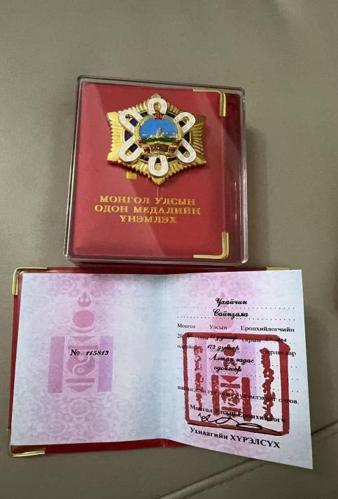 賽音吉雅准教授がモンゴル国最高勲章「北極星勲章(ALTAN GADAS)」を受章