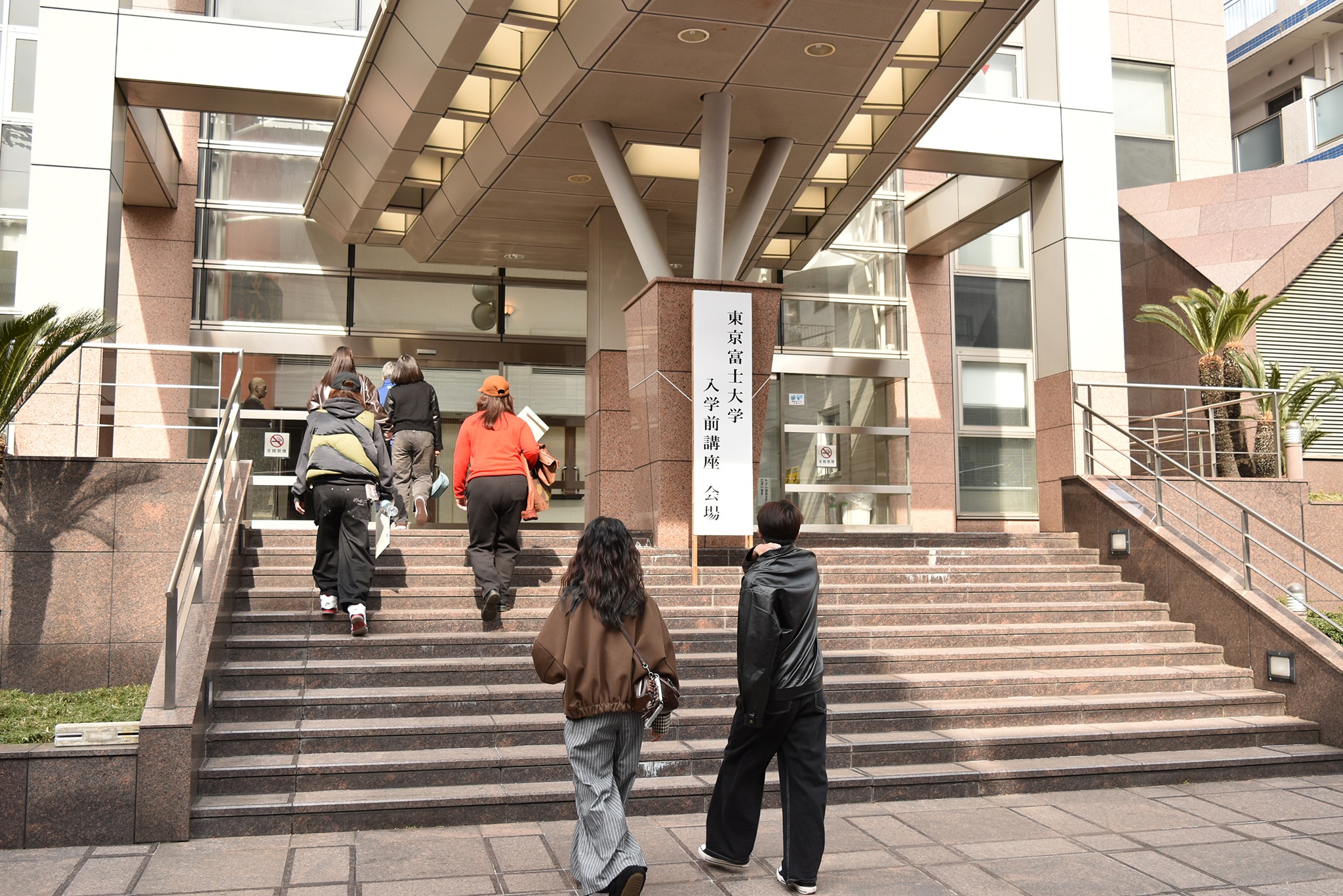 - 会場へ入る新入学生
