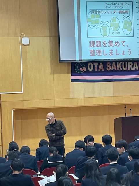 本プログラムは「地域活性化~大田区をよくするイベント~」というテーマのもと、全7回にわたり行われる予定です。第2回目となる今回は、本学イベントプロデュース学科の北原隆教授が指導を担当。生徒たちは3~4人のグループに分かれてアイデアを出し合い、その内容を個人やグループでワークシートにまとめる作業に取り組みました。
